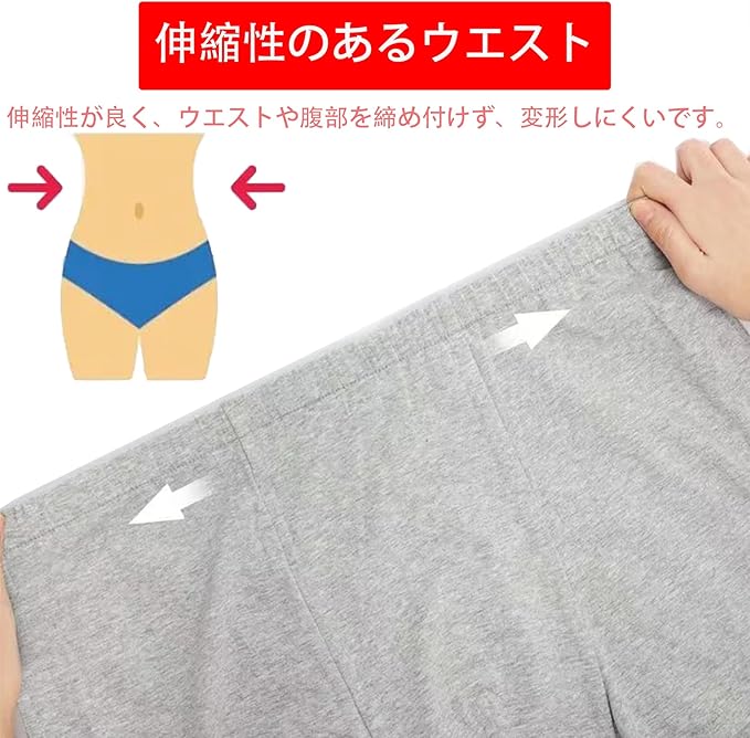 【伸縮性のあるウエストバンド】伸縮性のあるウエストバンドは、締め付けすぎず、ゆったりと快適に着用できます。手術後に着用したり、室内で着用したりできます。