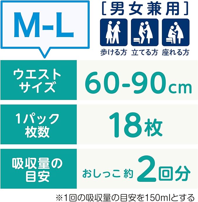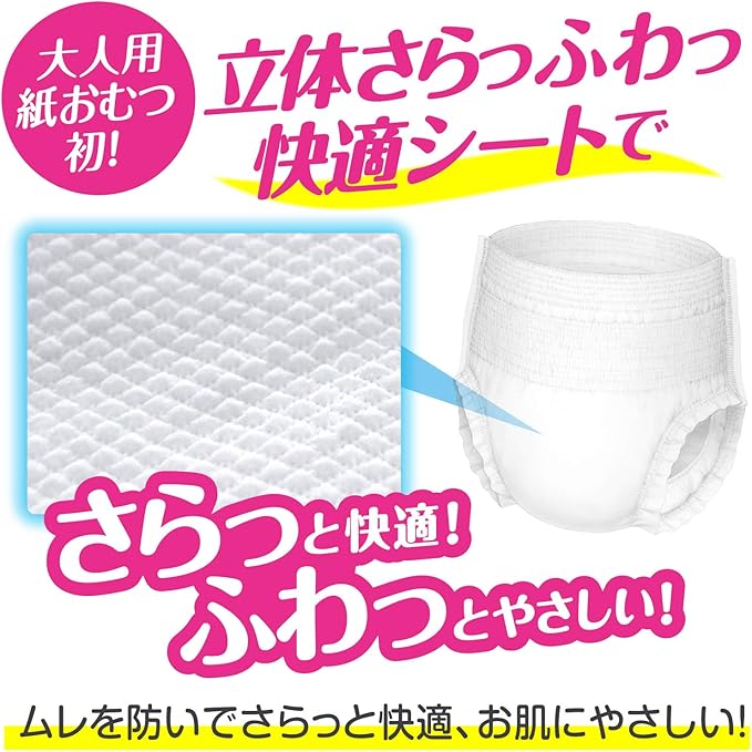 〇消臭抗菌効果のある大人用紙パンツ。〈br〉〇歩ける方・立てる方・座れる方におすすめ、パンツタイプうす型、M-Lサイズ。〈br〉〇ウェストサイズ60~90cm。おしっこ約2回分(1回の排尿量約150mlとして)。〈br〉〇立体さらっふわっ快適シートでお肌にやさしい。〈br〉〇気になる尿・汗・便臭をやわらげるセルロースナノファイバーを用いた抗菌効果のある超強力消臭シート。〈br〉〇吸収体スリット構造で、股下にぴったりフィットするからモレにくい。〈br〉〇薄さ3mmの超うす型吸収体で、軽やかなはきごこち。〈br〉〇立体ギャザー付き。全面通気性。