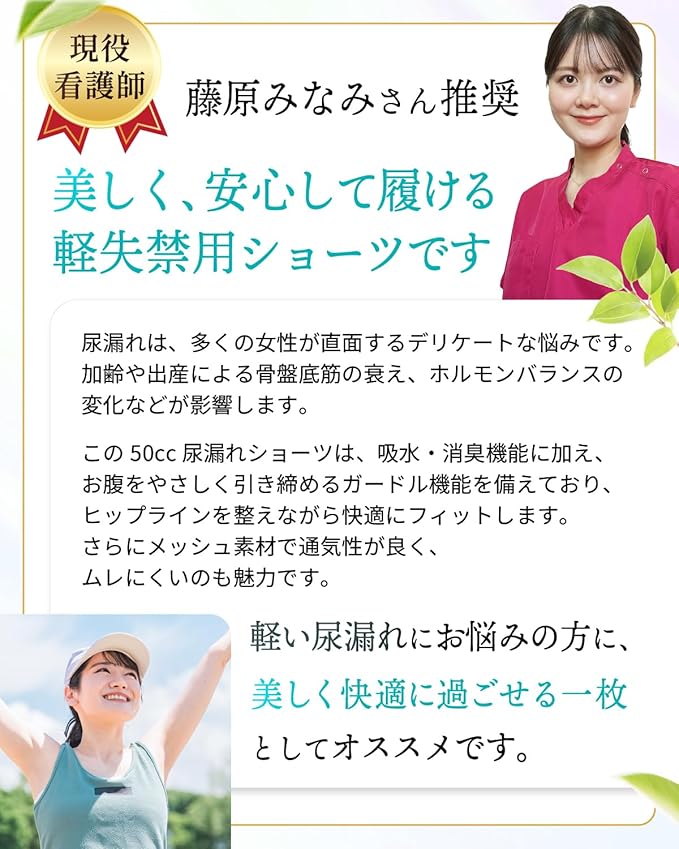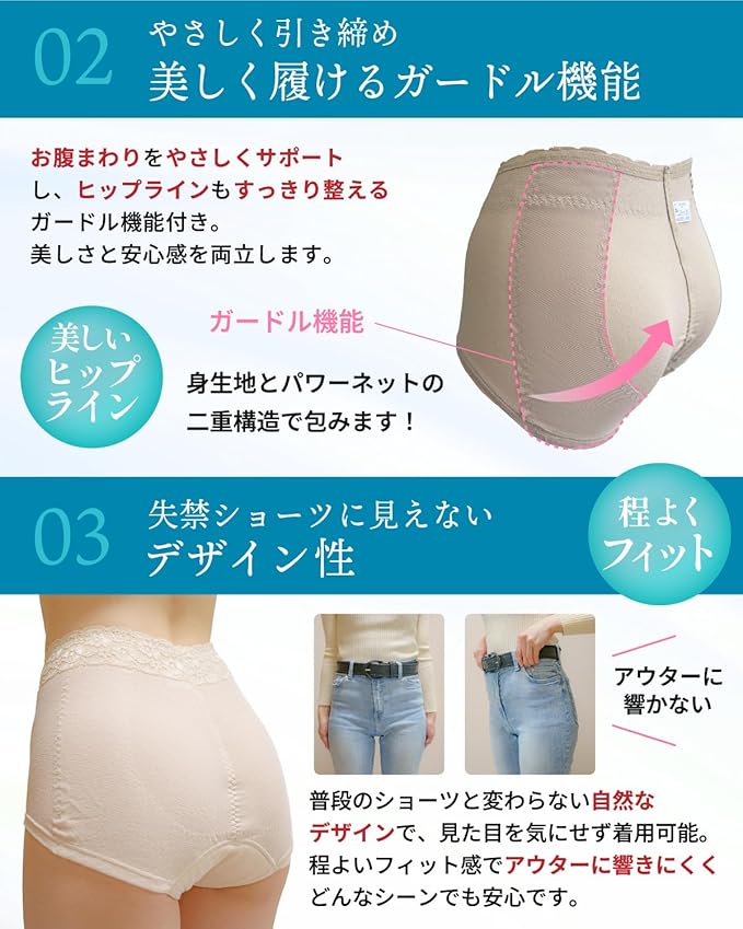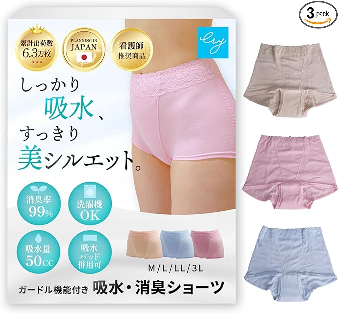 【雑誌掲載!】【医師・看護師 推奨】 50cc 失禁 ショーツ 99% 消臭 にょうもれ 尿漏れパンツ 軽失禁 ガードル機能付 日本製吸水シート 臭い対策 レディース 女性用 (3色,LL)