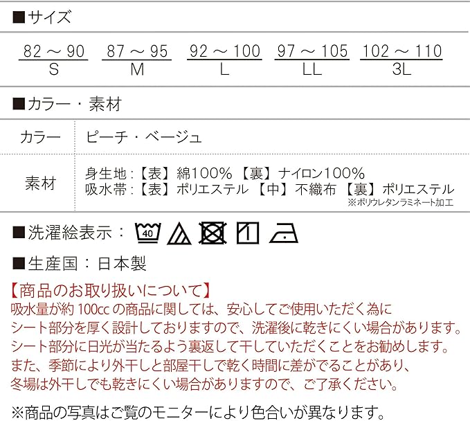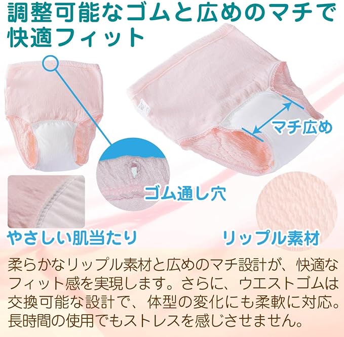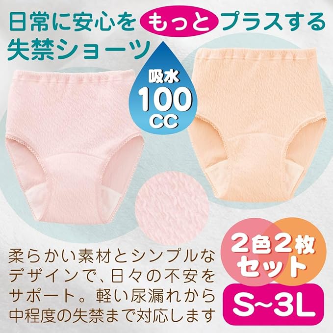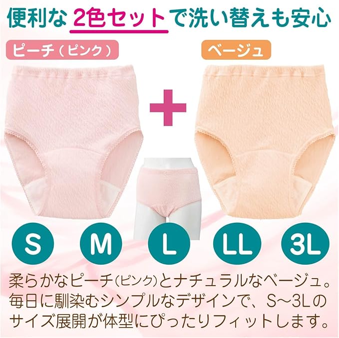 [RYO...]【日本製】失禁パンツ 尿漏れパンツ 2色2枚組 吸水量 100cc 綿100% リップル生地 失禁ショーツ 安心ショーツ 女性用 婦人 レディース ゆったり 深め 締め付けない お腹すっぽり 尿モレ 失禁対策 (3L)