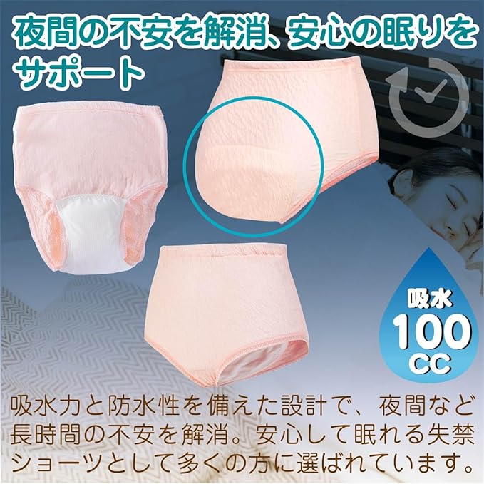 【しっかり吸水、最大100ccで安心サポート】 尿漏れをしっかり吸収する最大100ccの吸水力。軽度から中程度の尿漏れに対応し、長時間の外出やスポーツの時間も快適にサポートします。