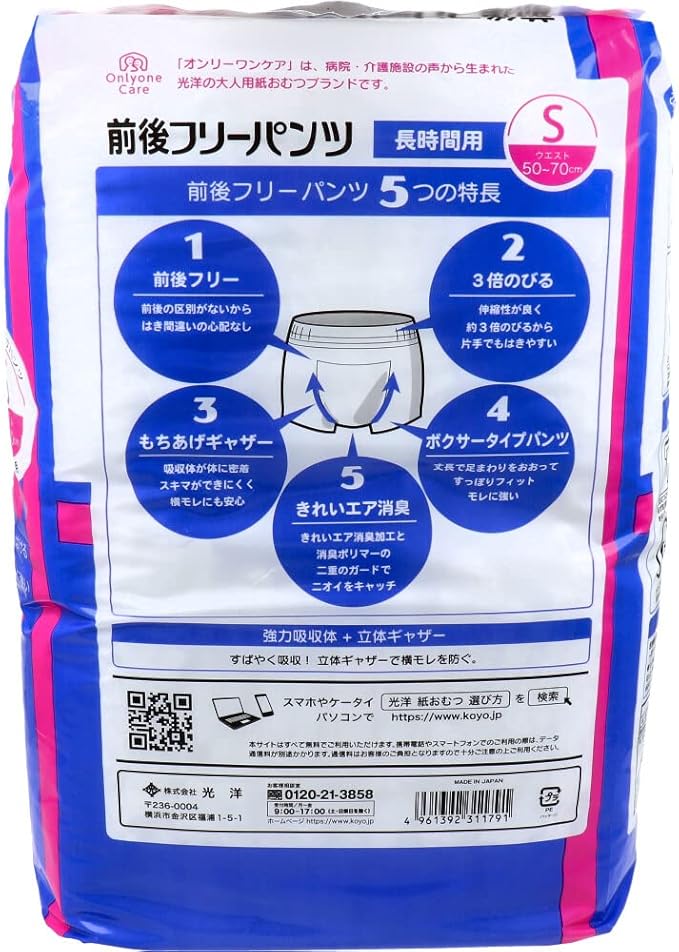 オンリーワンケア 前後フリーパンツ 長時間用 Sサイズ 20枚入