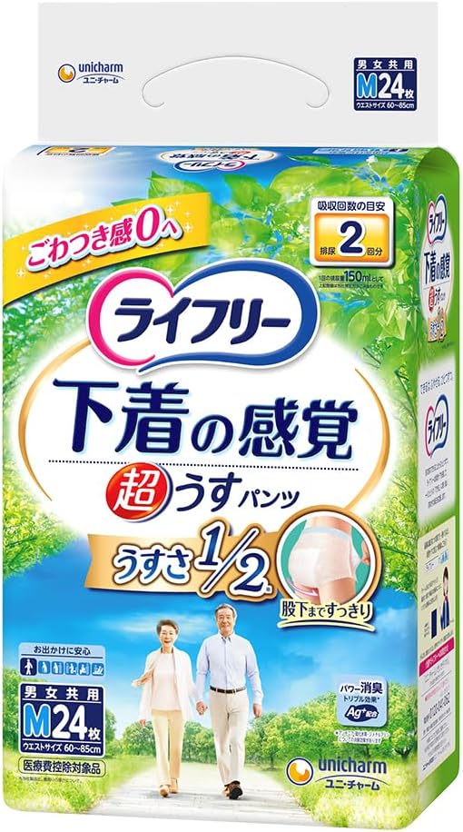 ライフリー パンツタイプ 下着の感覚超うす型パンツ Mサイズ 24枚 2回吸収 【一人で外出できる方】【下着のようなはき心地】