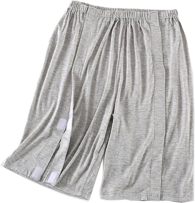 [KUMUROETA] 5分丈介護用パンツ 介護ゆるゆるな半ズボン 入院グッズ 術後 骨折する 両脇全開 柔らかくて軽い 普段着/寝たきり/術後/入院/点滴/骨折す対応 おむつ交換/お着替えサポート 敬老の日 グレー L