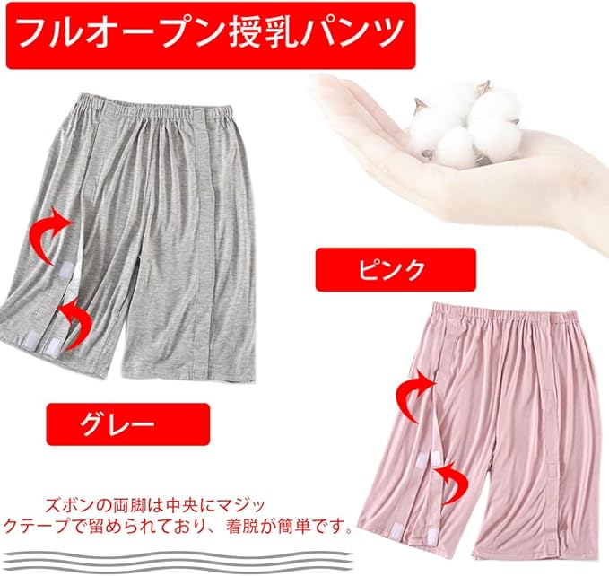 【吸湿速乾】フルオープン授乳パンツは高品質な素材を採用しており、吸汗性と保湿性に優れており、履き心地が蒸れにくいです。