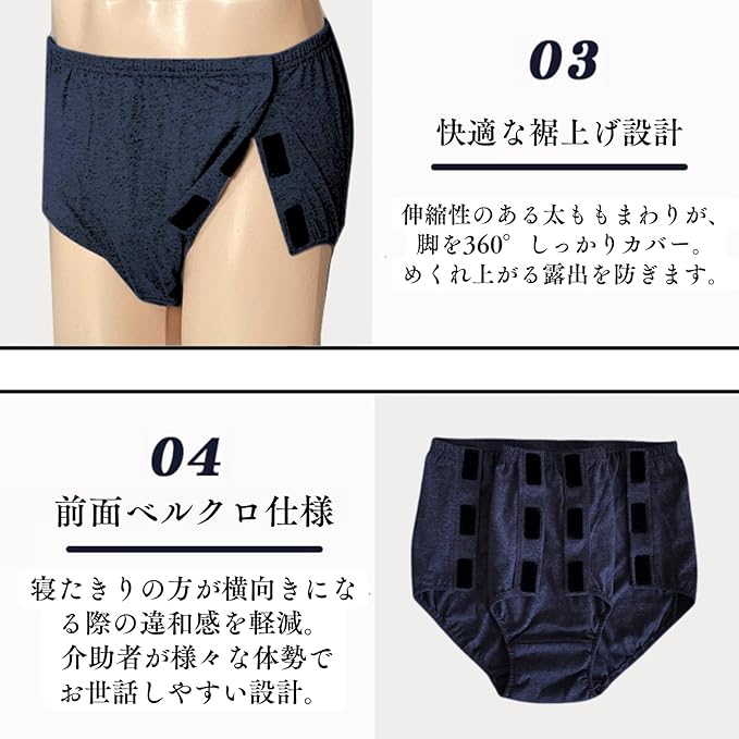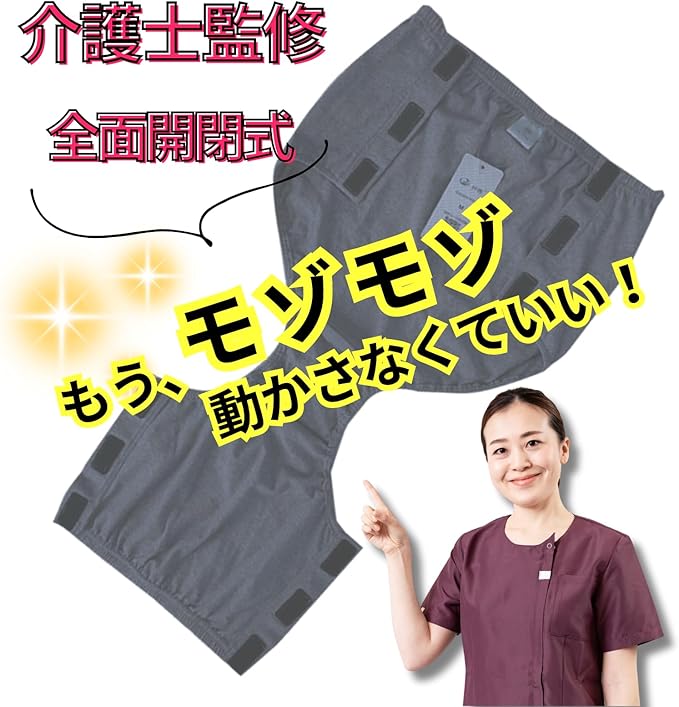 ✅【介護士監修・介護をもっとスムーズに】 面ファスナー(ベルクロ)で、座ったまま・寝たままでも簡単に着脱可能。介護する方・される方、どちらにとっても負担を軽減します。