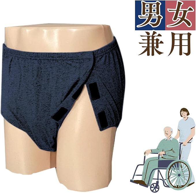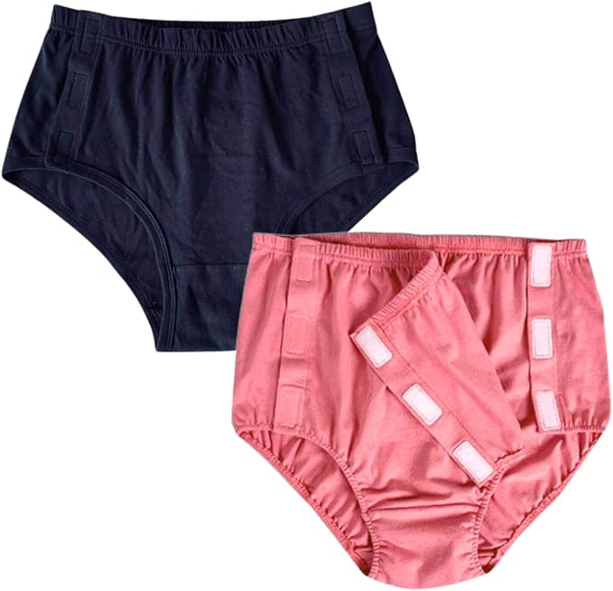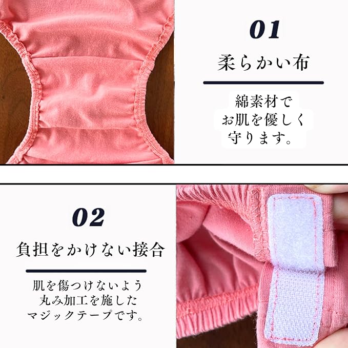 [KOREWA] 介護士監修 介護ショーツ 女性用 2枚組(ネイビー&ピンク) マジックテープ 全開式 お着替え補助 介護用パンツ 下着 入院用 要介護 寝たきり対応