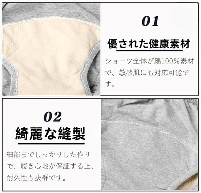 【優された健康素材】本体は心地よいフィット感にこだわり肌に優しい厳選された綿と内蔵したTPU防水フィルムと竹繊維消臭機能付きの吸水布素材から作成されて、吸水性抜群ながら伸縮性も優れています。締め付けにくく快適な履き心地を実現します。快適でお肌を優しく守ってくれます。安心しておやすみいただけます。