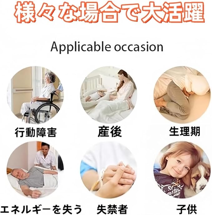 【いつもの安心を守る】:おねしょはもちろん、旅行や外出の時にも不安な方、介護用や入院時で介助が必要な時にもおススメです。旅行などで、尿漏れしてもすぐにパンツやパッドを交換できないときにも便利です。タイトな体験が苦手な方は1サイズ上をおすすめします。また、多い日には生理尿片合わせてご使用ください。