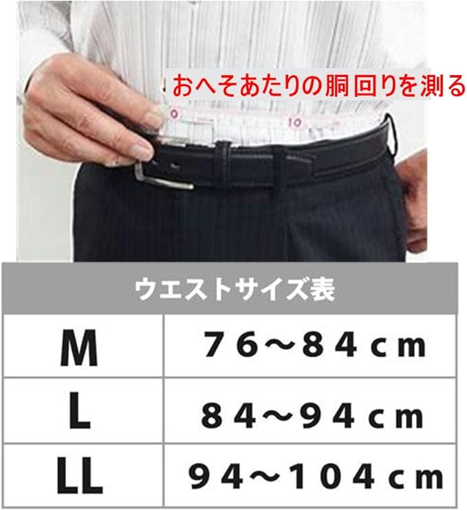 サイズ:M/胴囲76-84、L/胴囲86-94、LL/胴囲94-104cm