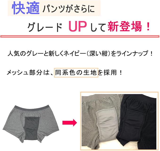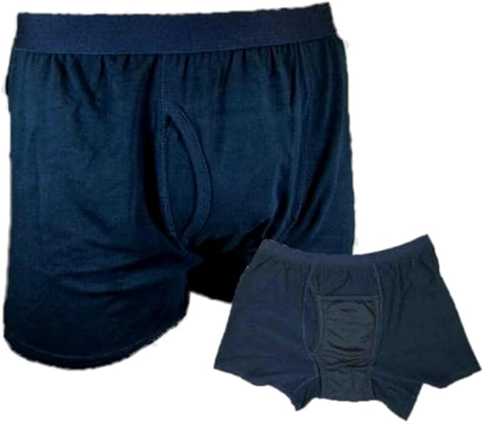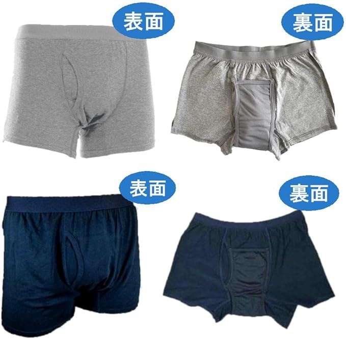 失禁 尿 漏れ パンツ 男性 用 メンズ 吸水 尿漏れパッド 失禁用 尿失禁 下着 無地 ボクサーパンツ 裏面同色 グレードUP 軽量 大きいサイズ (ネイビー(黒っぽい)1枚, M(76~84㎝))