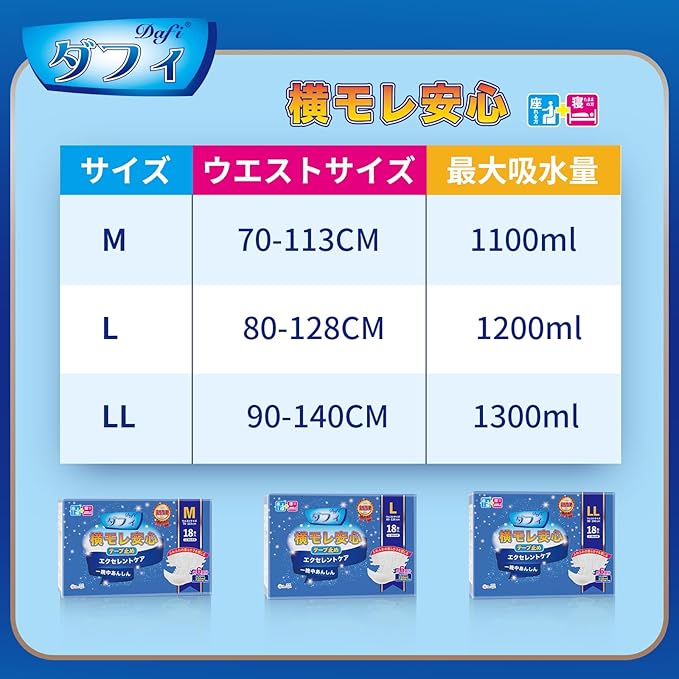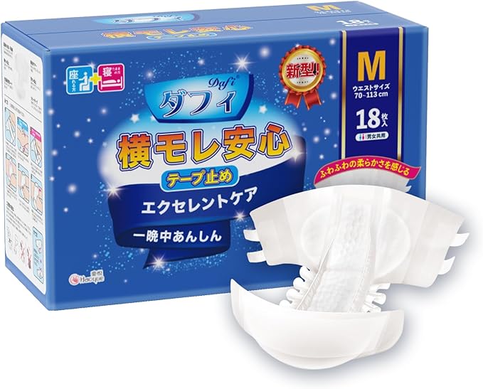 DAFI 【吸収アップ!】大人用 おむつ テープ式 Mサイズ 18枚 柔らかい 横モレ安心 エクセレントケア 長時間吸収 介護用オムツ 尿漏れ対応 通気性 大人用おむつ テープ止め【ADL区分:寝て過ごす事が多い方】
