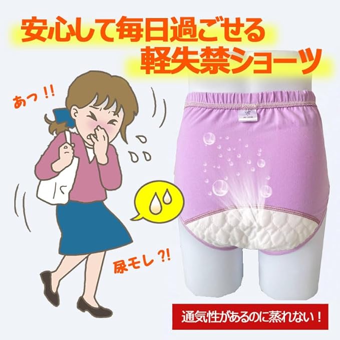 【目立ちにくいシンプルデザイン】見た目は普通パンツに見えますが、表側からは吸水帯が目立ちません。さらに吸水帯の縫い合には「滲み出し防止」の工夫をしています。