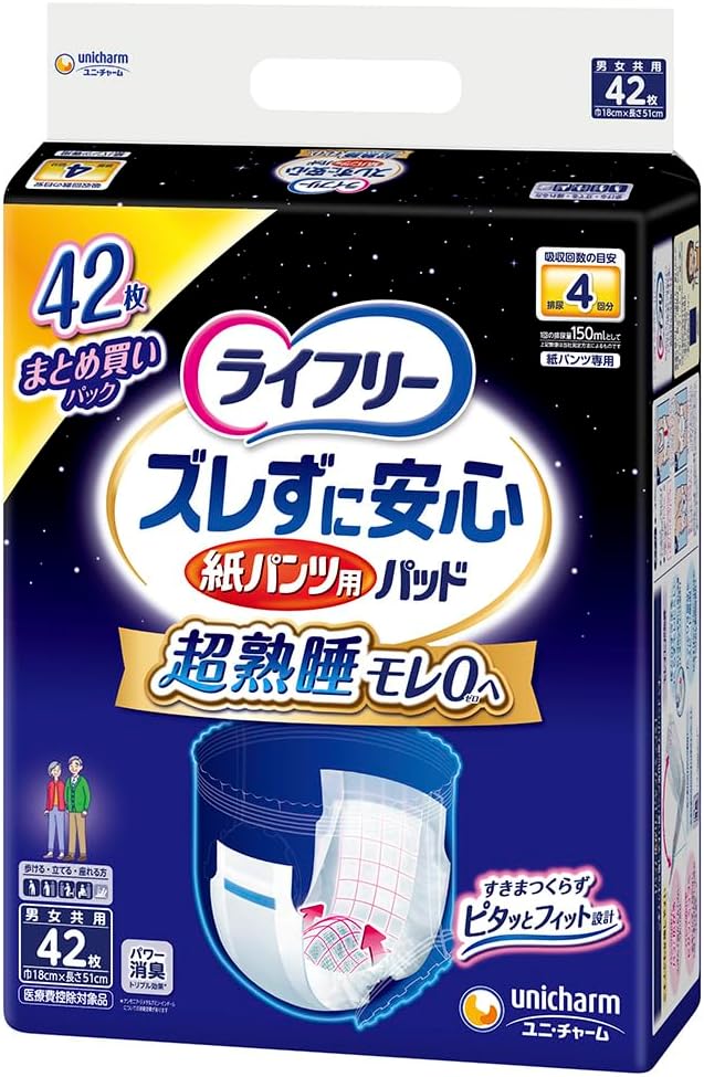 ライフリー パンツ用尿とりパッド ズレずに安心紙パンツ専用 夜用 4回吸収 42枚