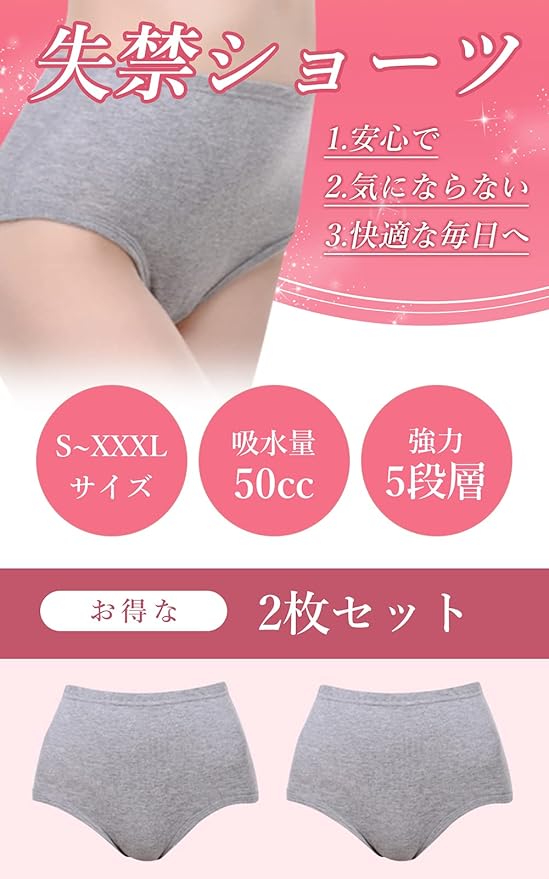 Zakya にょうもれぱんつ女性 失禁パンツ 女性用 尿漏れショーツ 失禁ショーツ 吸水パンツ 軽失禁ショーツ 50cc 軽失禁 中失禁 介護パンツ レディース 2枚セット (XL)