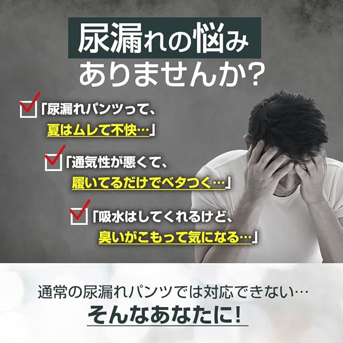 「尿漏れパンツって、夏はムレて不快…」 「通気性が悪くて、履いてるだけでベタつく…」 「吸水はしてくれるけど、臭いがこもって気になる…」 分厚いパッドで夏はムレムレ…その臭いがもれていないか心配ですよね。 日本製「ピュアオアシス」を採用した「尿漏れメッシュボクサーパンツ」なら、その不安を解消。 吸水性&通気性で、夏の尿漏れパンツはこれで決まり!