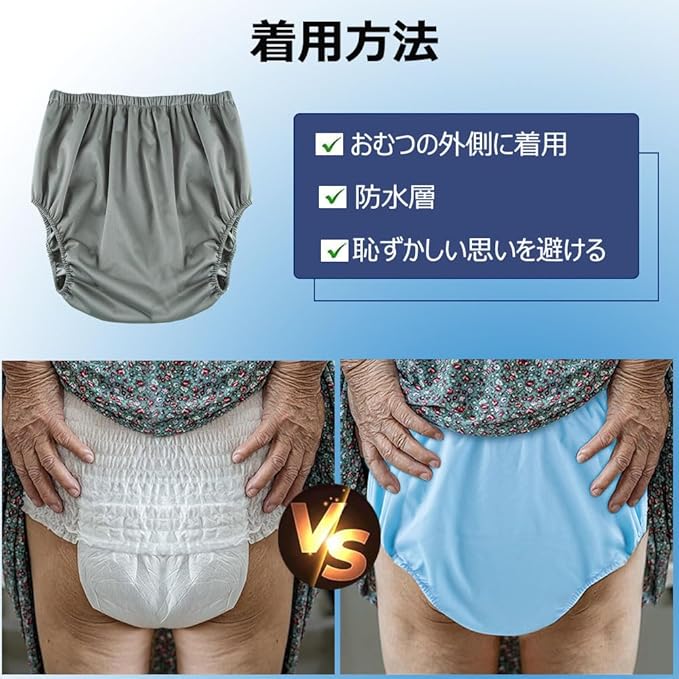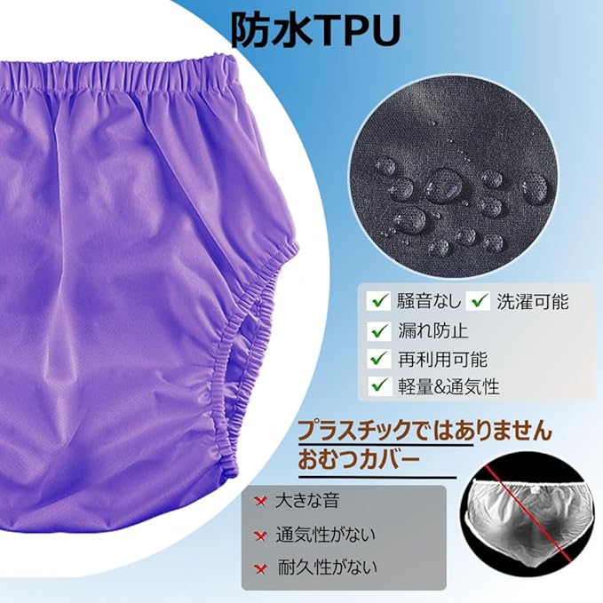 【追加の漏れ防止】このアイテムはおむつではなく、おむつの上に着用するプルオンカバーを備えた特別に作られた防水パンツで、特に優れた安全性を提供します。中程度から重度の失禁シナリオに適しています。