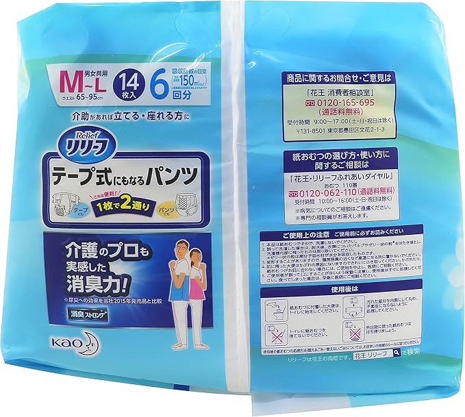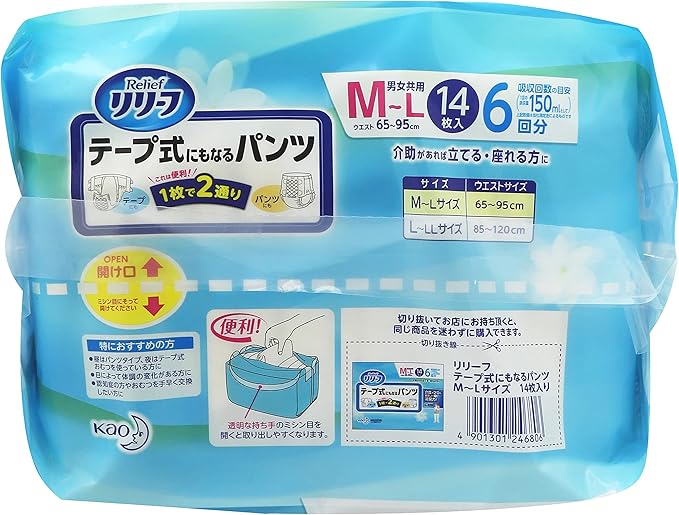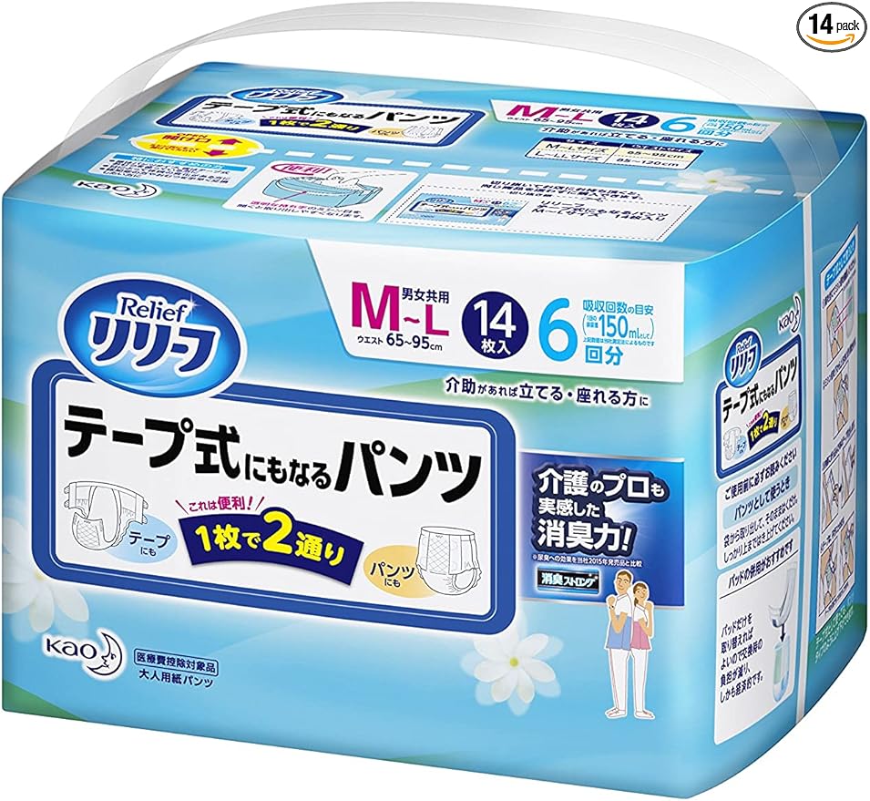 KAO リリーフ 花王 テープ 式にもなるパンツ M~L 14枚【ADL区分:立てる・座れる方】