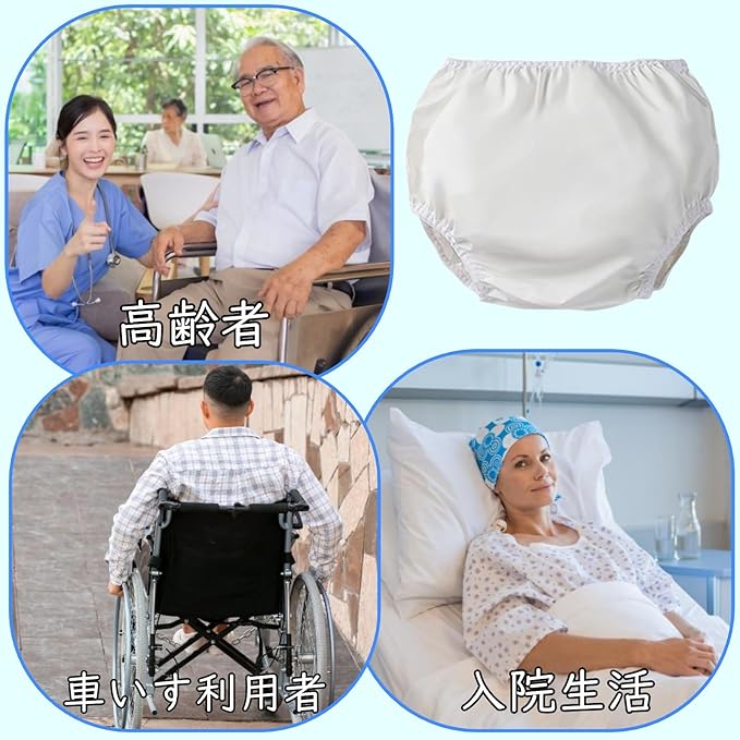 【介護の負担軽減◎】不意の失禁用に万全の準備ができ、ご本人と介護者がともに笑顔になれます。柔らかいゴムが優しくフィットし、締めつけ感がありません。通気性に優れた素材で、着用感がとてもいいです。