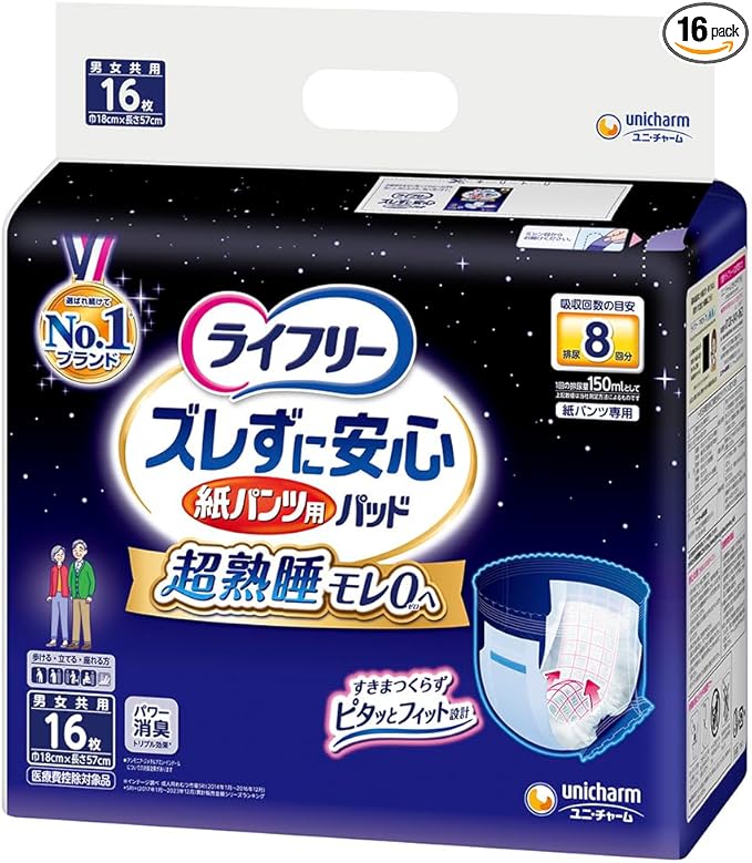ライフリー ズレずに安心 紙パンツ用尿とりパッド 夜用 16枚 8回吸収(パンツタイプ用)