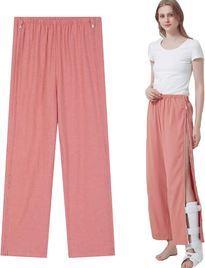 KUMUROETA 介護用ズボン 両側ファスナー フ綿100% 通年用 着脱便利 検診 点滴サポート 骨折病衣 入院 術後リハビリ 寝たきり オムツ着替えサポートL