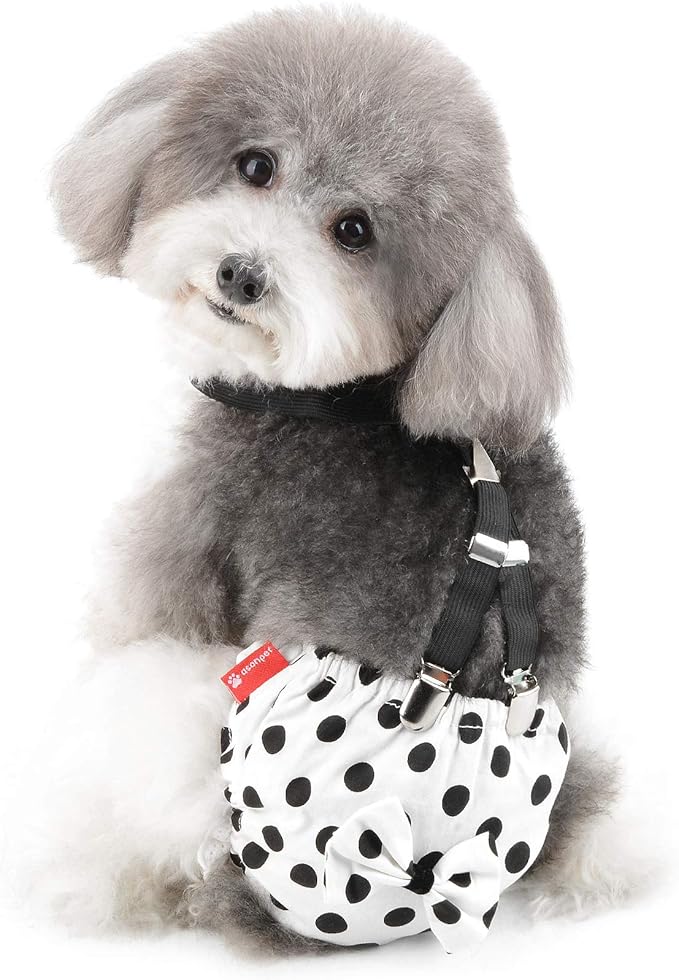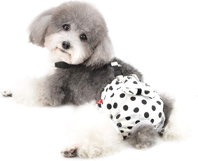 Ranphy 犬用 おむつ サスペンダー付き 子犬 猫 サニタリーパンツ 水玉 可愛い 雌犬/小型犬/超小型犬/老犬用 犬の発情期/介護用 おむつカバー 生理期 パンツ ペット マナーパンツ 女の子 犬服 感染を防ぐ 発情期用