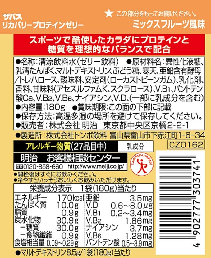 モデル名 明治 ザバス リカバリープロテインゼリー ミックスフルーツ風味