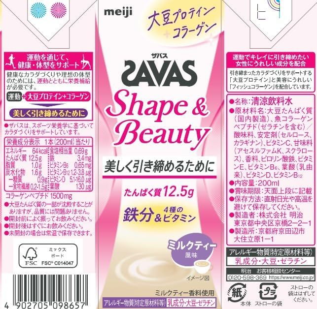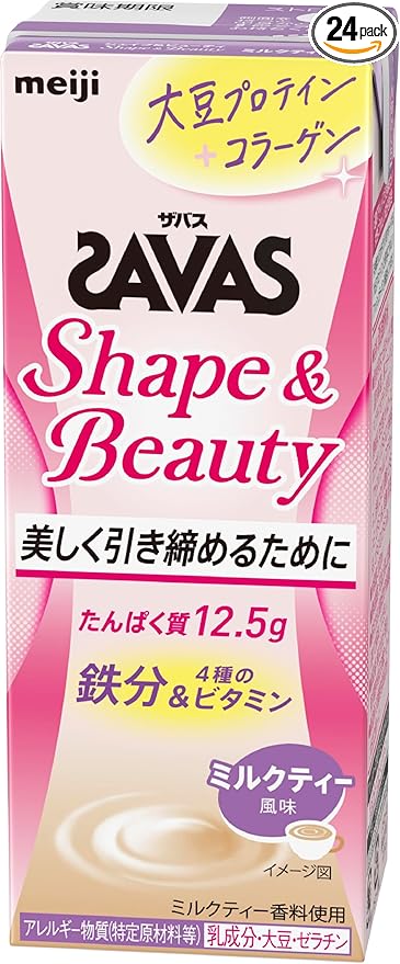 SAVAS(ザバス) シェイプ&ビューティ ミルクティー風味 200ml 24本 明治 ソイプロテイン
