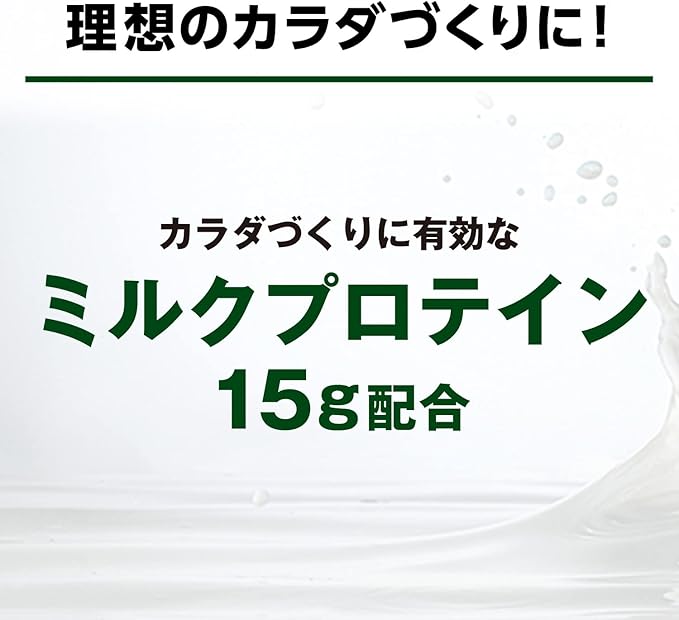 特徴:ミルクプロテインを手軽に摂取。カラダづくりに有効なミルクプロテインを15g配合し、運動後に摂取することで理想のカラダづくりをサポートします。