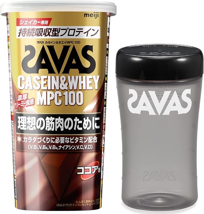 【セット買い】ザバス(SAVAS) カゼイン&ホエイ MPC100 ココア味 210g + ザバス プロテインシェイカー(500ml)