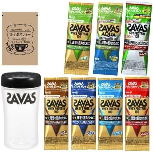 [セット品]【SAVAS】ザバス プロテイン トライアルタイプ 7種 + プロテインシェイカー1個 + SHOWルイボスティー1袋