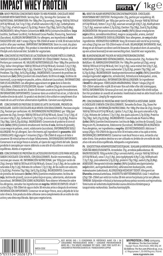 マイプロテイン ホエイプロテイン・Impact Whey (チョコレートミント, 1000g)