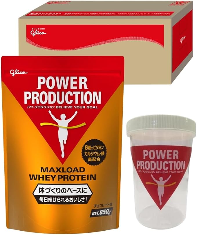 【公式】グリコ パワープロダクション マックスロード ホエイ プロテイン チョコレート味 850g & オリジナル シェーカー グリコボックス入り ② おいしい