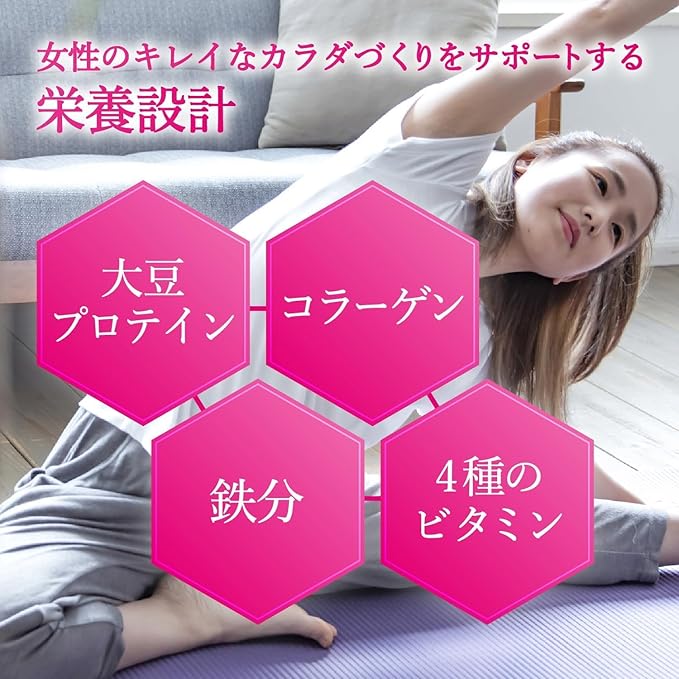 ソイプロテイン、10種のビタミン、3種のミネラルに加え、コラーゲンを配合した粉末プロテイン