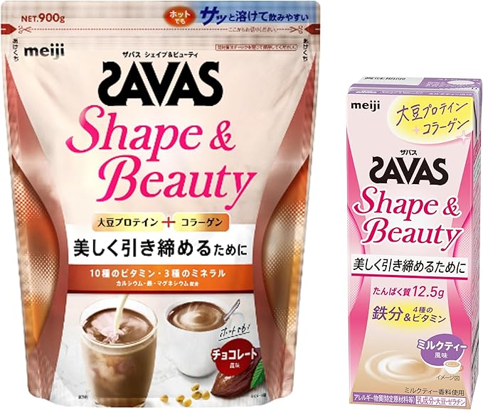 【セット買い】ザバス(SAVAS) シェイプ&ビューティ チョコレート風味 900g + ザバス シェイプ&ビューティ ミルクティー風味 200ml 24本
