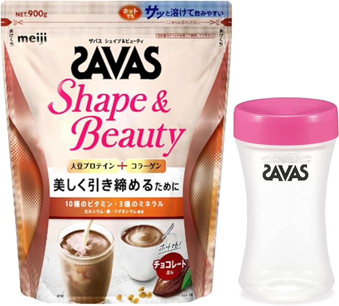 【セット買い】ザバス for Woman シェイプ&ビューティ チョコレート風味 900g+ザバス コンパクトプロテインシェイカー (350mL)