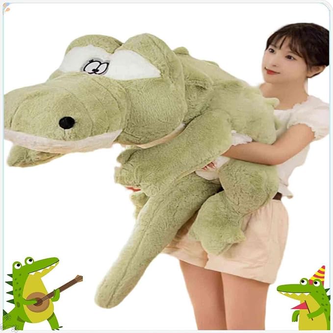 HYAKURIぬいぐるみ 特大 ワニ 可愛い熊 動物 大きい/巨大 ワニ/クマ抱き枕/お祝い/ふわふわぬいぐるみ (グリーン, 110cm)
