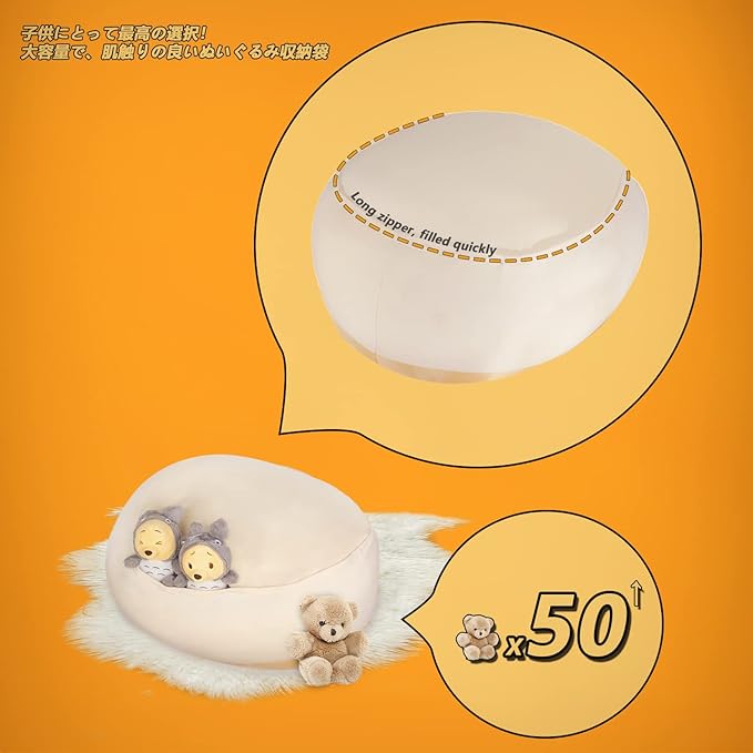 【驚異の収納力】:ぬいぐるみ50個以上/大人用毛布6枚/大人用枕6個がすっぽり収納! ポリエチレンビーズを詰めれば即座に子供用ソファに変身! インテリアとしても可愛い『巨大ぬいぐるみデコレーション』に!