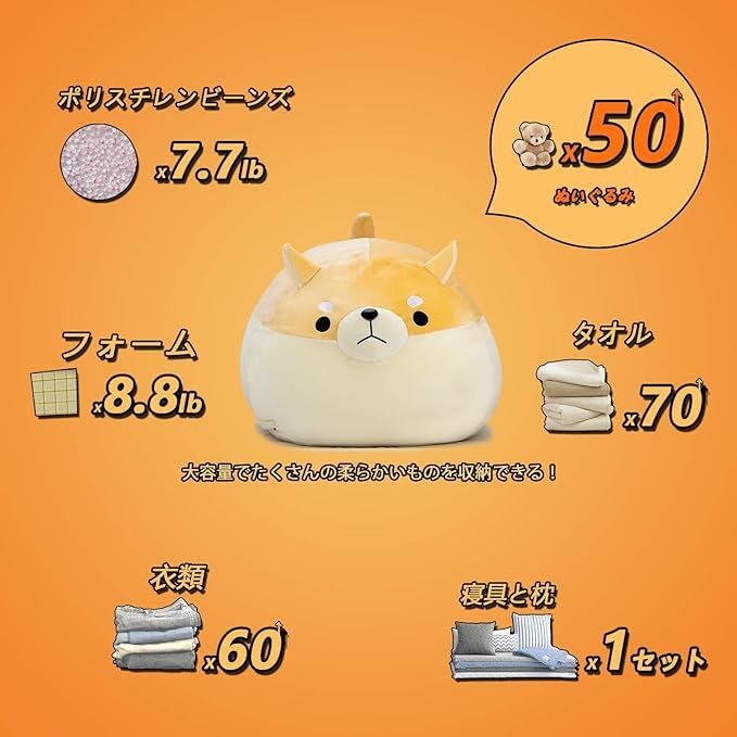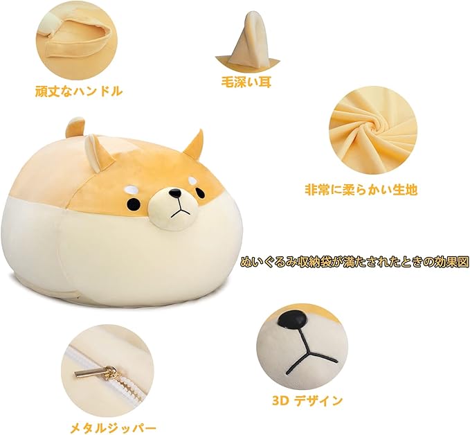 CueBear 布団収納袋 ぬいぐるみ収納袋 クッションになるカバー 柴犬デザイン 多機能収納 布団を入れてクッションになる! 省スペース 衣類なども収納可能!柔らかい生地 肌触りが良い 癒しグッズ 子供プレゼント stuffed animal storage