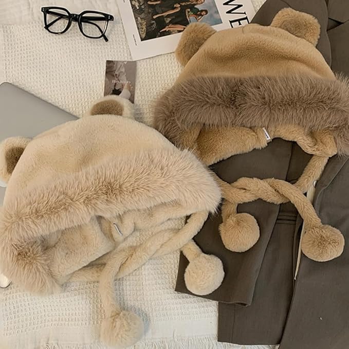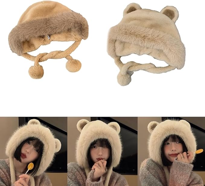 [フィカペブ] 女性のためクマ耳を備え冬暖かい毛皮ぬぐるみ