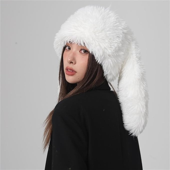長い耳を特徴とするニットの帽子をかぶって、暖かくスタイリッシュに保ちます。豪華な帽子で作られているこれらの帽子は、寒い季節に快適さを提供します