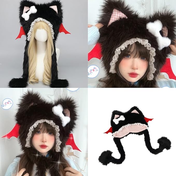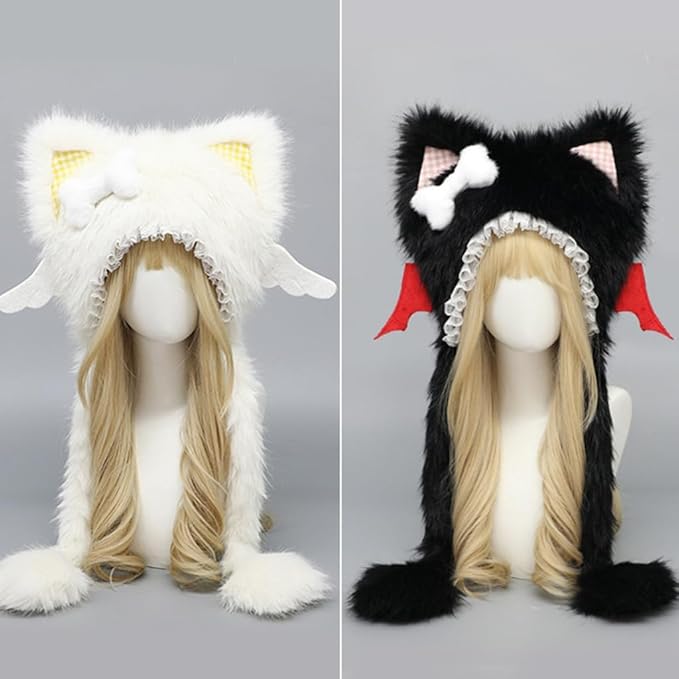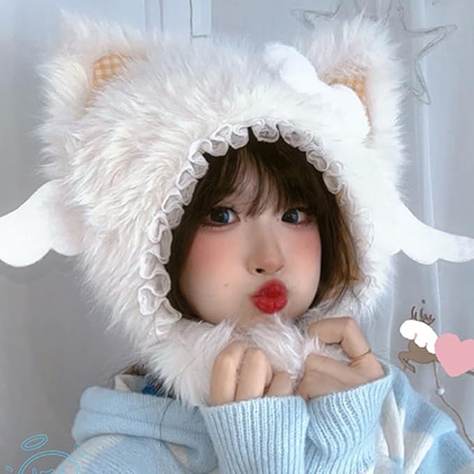 [フィカペブ] 屋外のスポーツため耳で毛皮ような漫画頭帽子猫冬柔らかいぬぐるみ