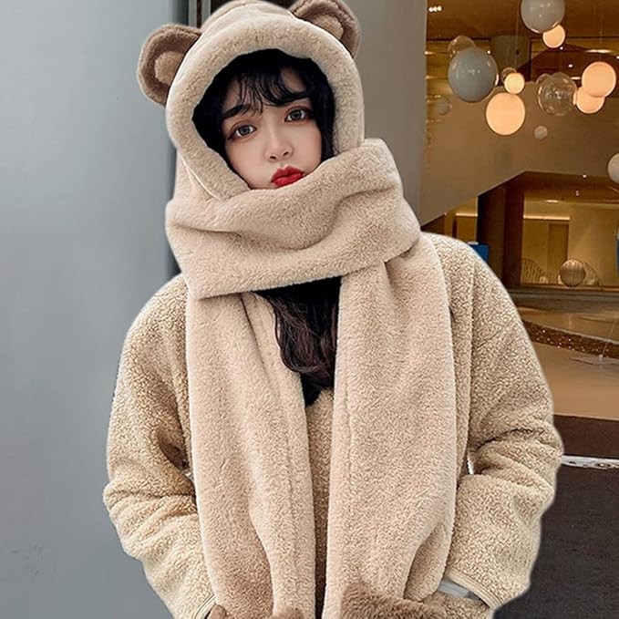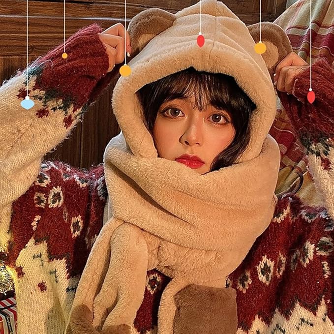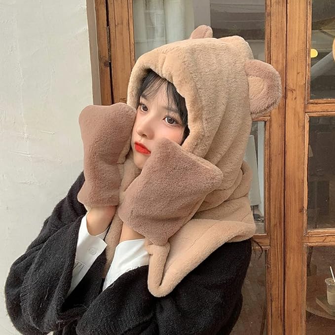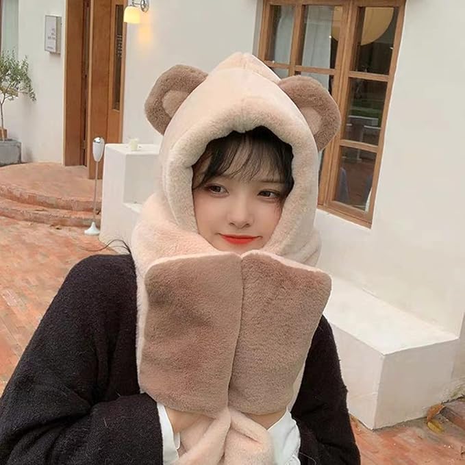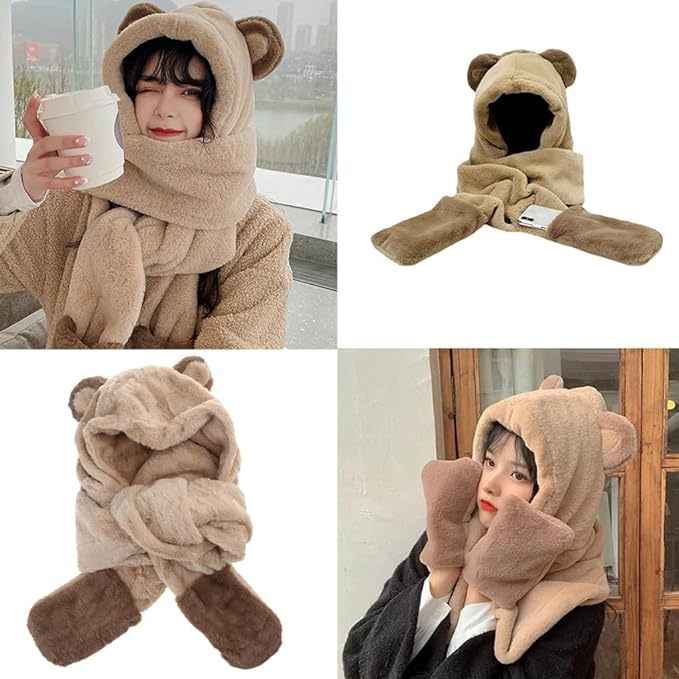 [フィカペブ] ファッション冬の温かい甘ベアぬぐるみスカー風力発電多機能漫画帽子&グロブセト