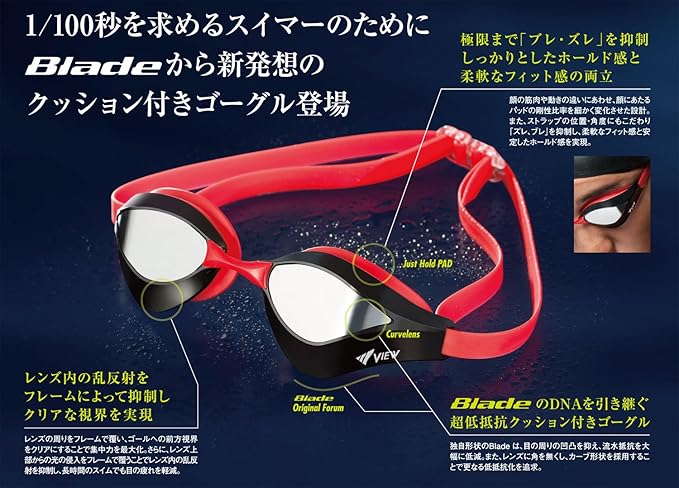 トップスイマーに信頼されるスイムゴーグル「Blade」のクッション付きゴーグル。