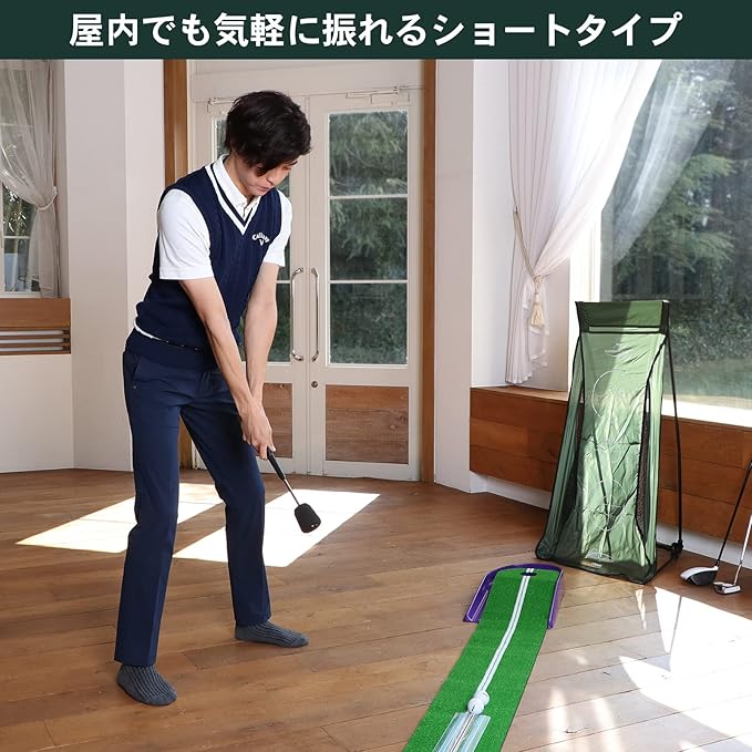 ・ヘッドにソフトカバーを装着した安心設計! ショートタイプなので室内練習にも安心!