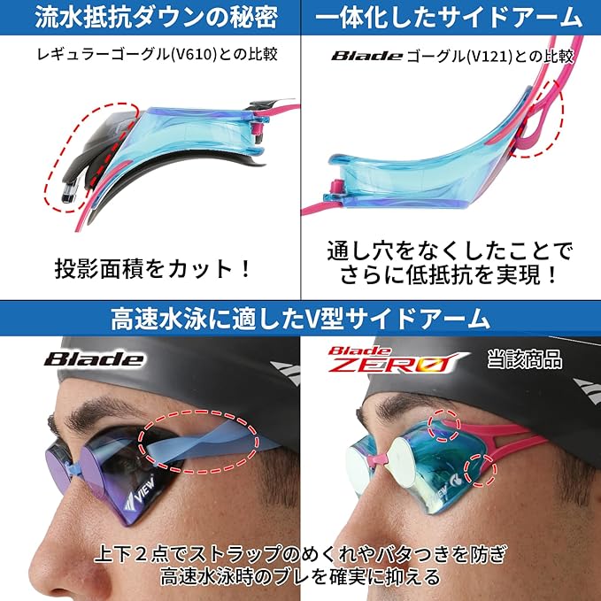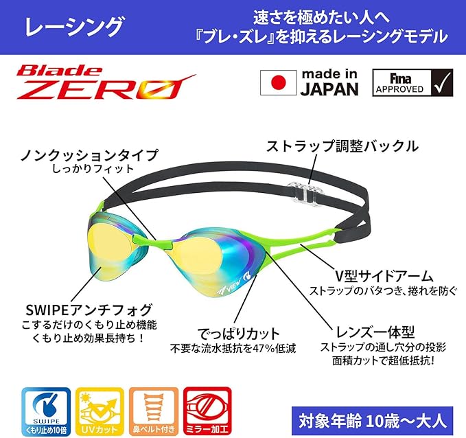 VIEW(ビュー) 競泳 ゴーグル Blade ZERO ミラーコーティング UVカット 曇り止めコーティング V127SAM