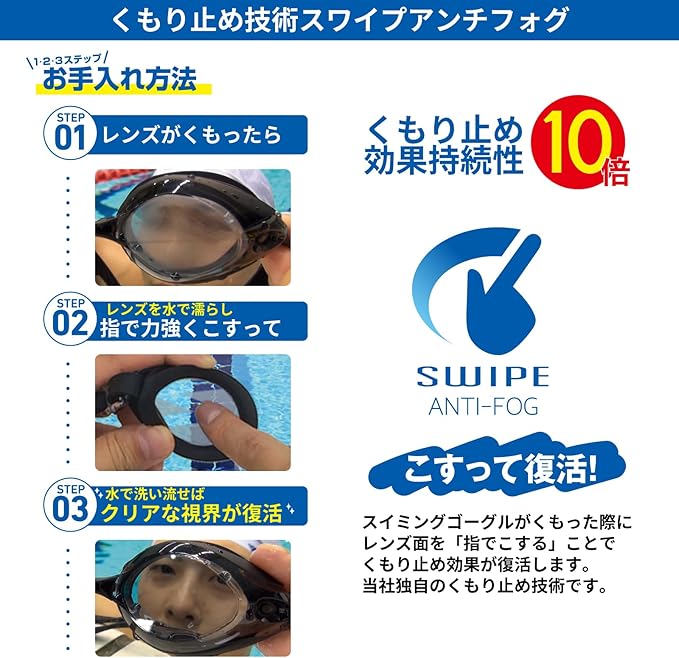 こするだけでくもり止め効果が復活するSWIPE搭載、フェイスラインによって選べる5サイズの鼻ベルト付