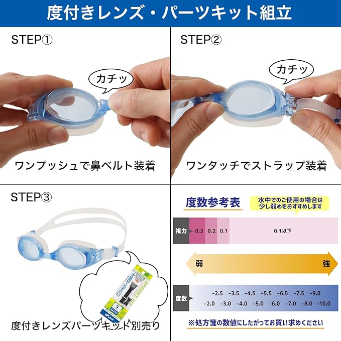 VIEW(ビュー) スイミングゴーグル 度付きレンズ 日本製 フィットネス 大人用 片眼レンズ くもり止め機能SWIPE搭載 抗菌モデル VC580SA パーツキット VPS570