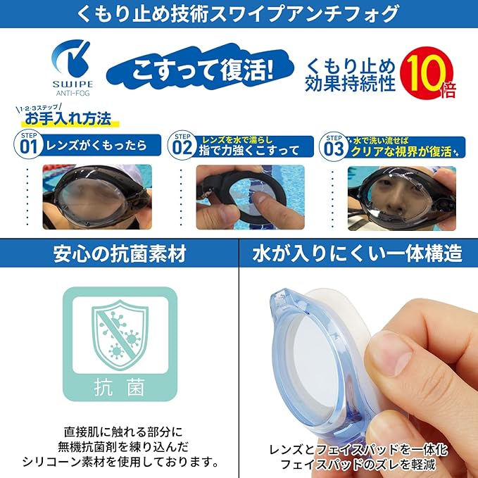近視用 度数:-4.5、こするだけでくもり止め効果が復活するSWIPE搭載