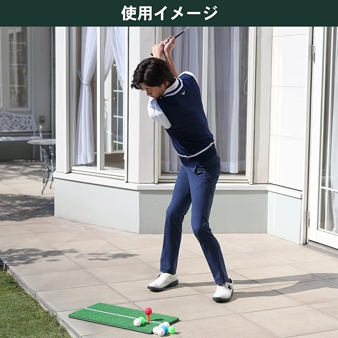 【軌道が分かりやすい白線付き】Tabata(タバタ)オリジナルのゴルフショット練習用マットは、インパクト軌道が分かりやすい白線付きです。1球1球、スイング軌道を意識しながら練習することでスイング上達に繋げましょう。